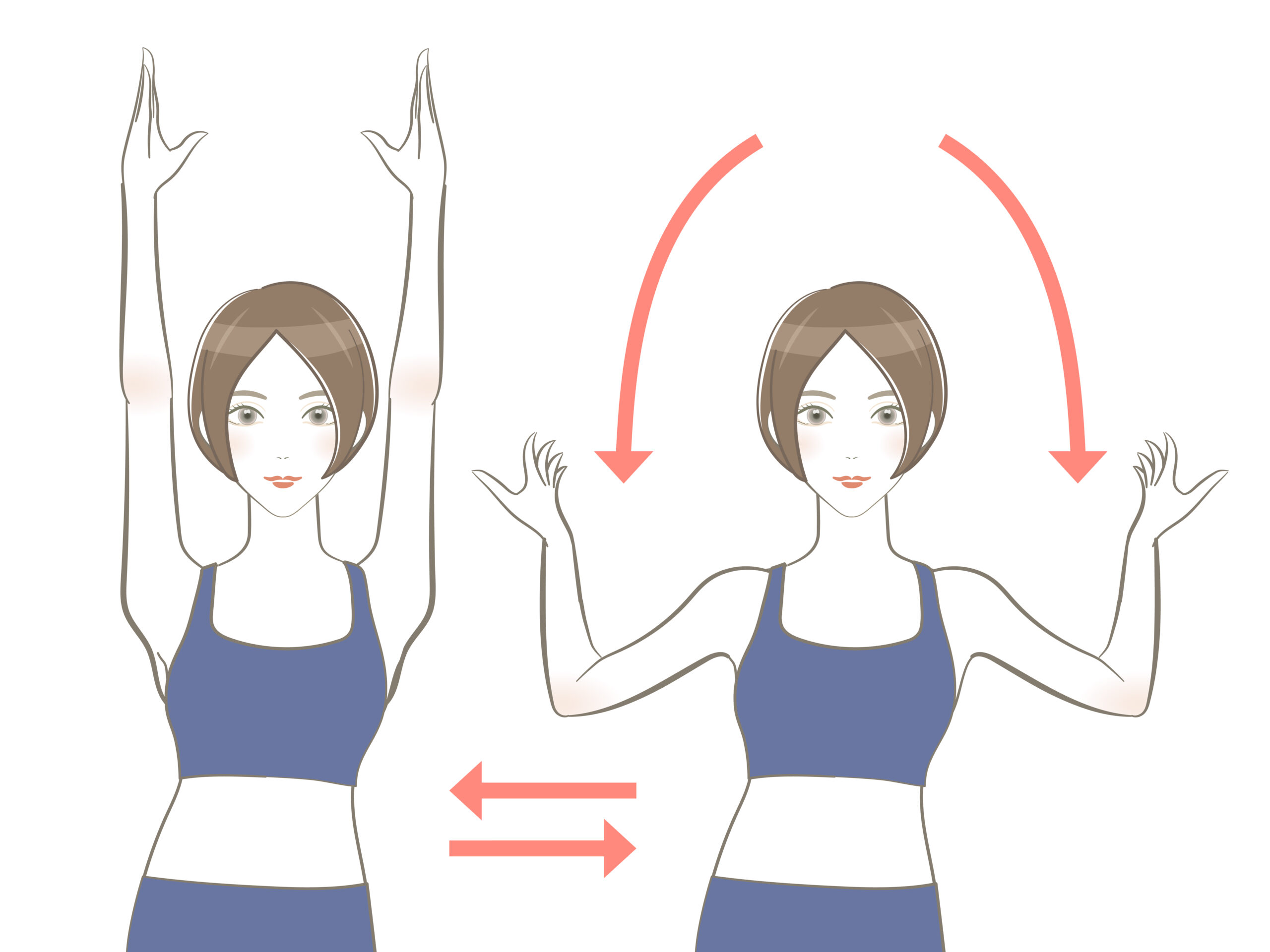 まず、背筋を伸ばして立ちます。この姿勢を保つことが重要です。次に、両手を肩の高さで前に伸ばし、手のひらを下に向けます。この状態で、腕を肩の高さからゆっくりと上げていきます。このとき、肘を曲げずにまっすぐ伸ばすことがポイントです。