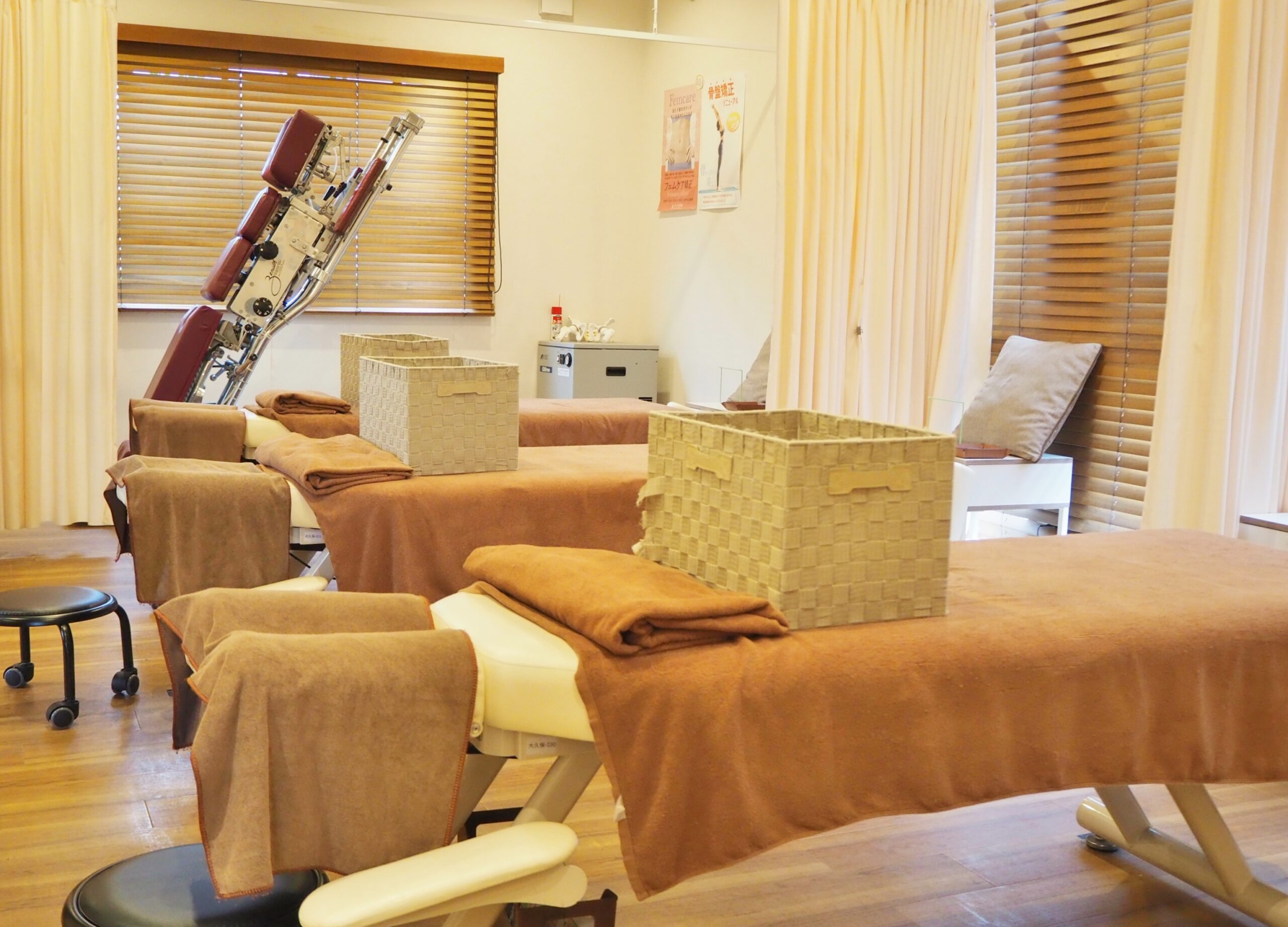 スーツやスカートでも、手ぶらでご来院いただけます。お仕事帰りや買い物のついでに、お気軽にお立ち寄りください。