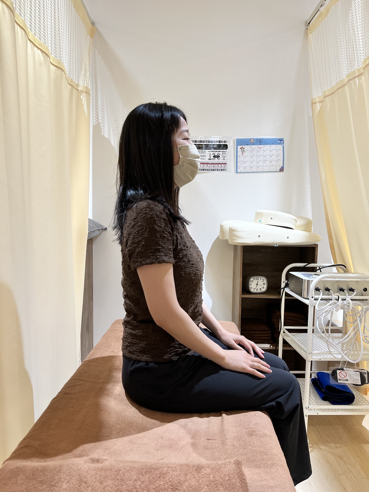 スーツやスカートでも、手ぶらでご来院いただけます。お仕事帰りや買い物のついでに、お気軽にお立ち寄りください。